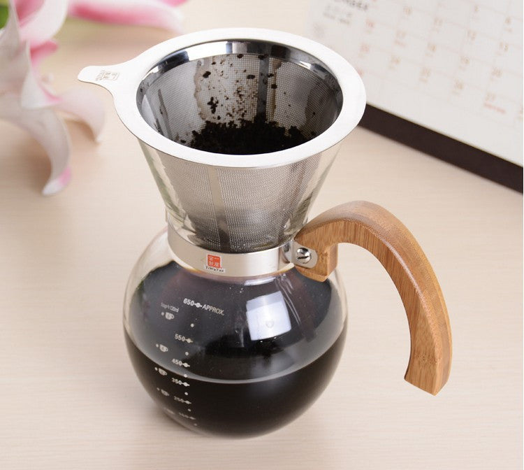 FeiC 1pc Chemex style 250ml 600ml woodneck Stainless steel filter Classic Series Glass Coffee Maker for barista drip coffee